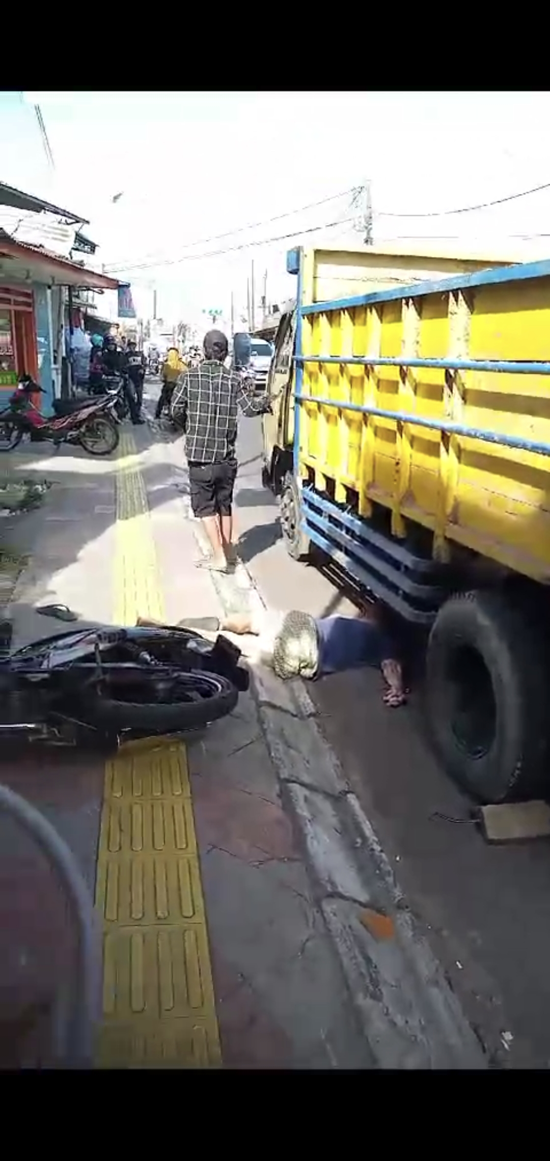 Pengemudi truk lantas menghentikan laju kendaraannya. Namun nahas, tubuh korban telah terlindas. Warga sekitar tak berani mendekat untuk evakuasi. Tak lama polisi pun tiba di lokasi.