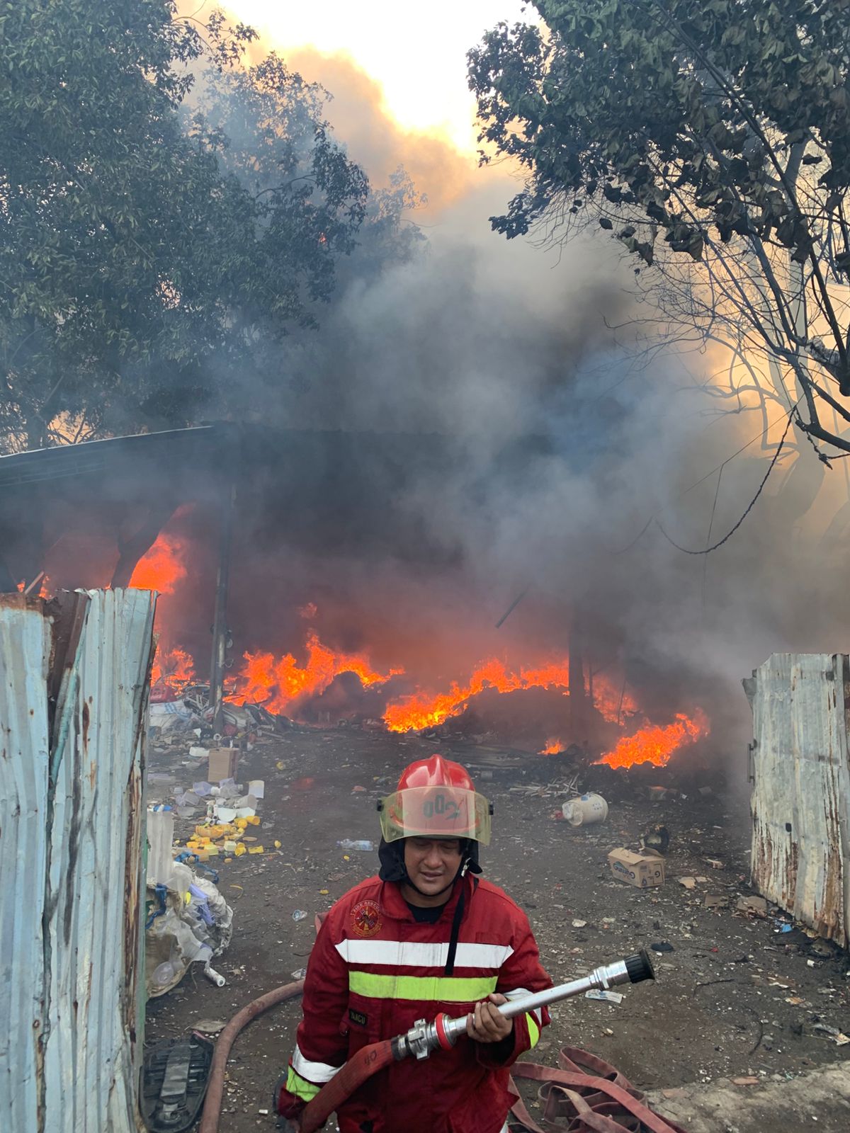 Tangerang Selatan – Lapak barang bekas ludes terbakar di Jalan Masjid Baiturahim, Jurang Mangu Timur, Pondok Aren, Tangerang Selatan (Tangsel), Senin (07/10/24). Petugas berjibaku memadamkan api hingga larut malam.