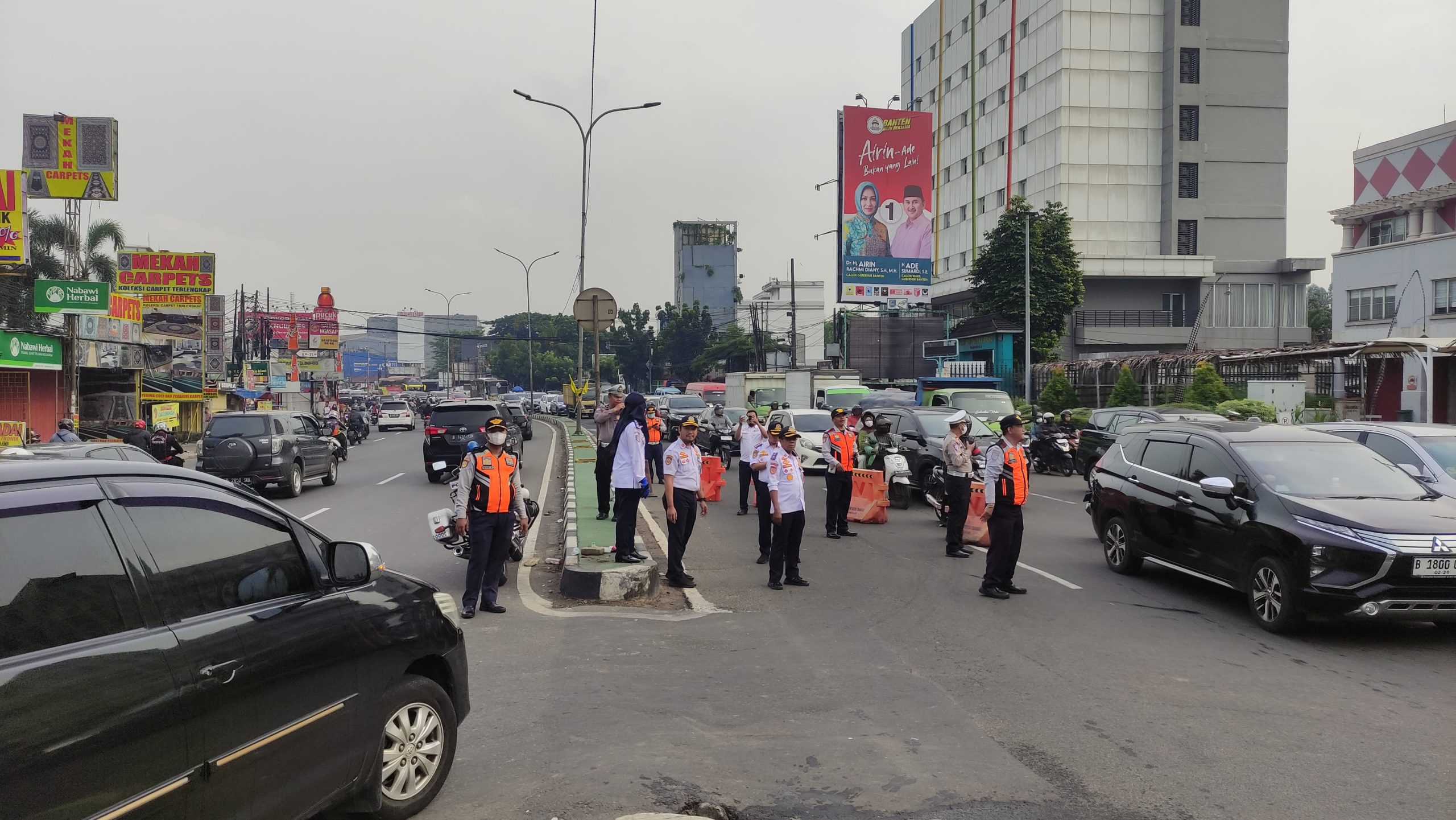 Pantauan di lokasi sekira pukul 16.00 WIB, sejumlah petugas nampak mengarahkan pengendara yang melintas agar terus melaju. Namun banyak pengendara motor dan mobil yang protes, makian pun dilontarkan pada para petugas.